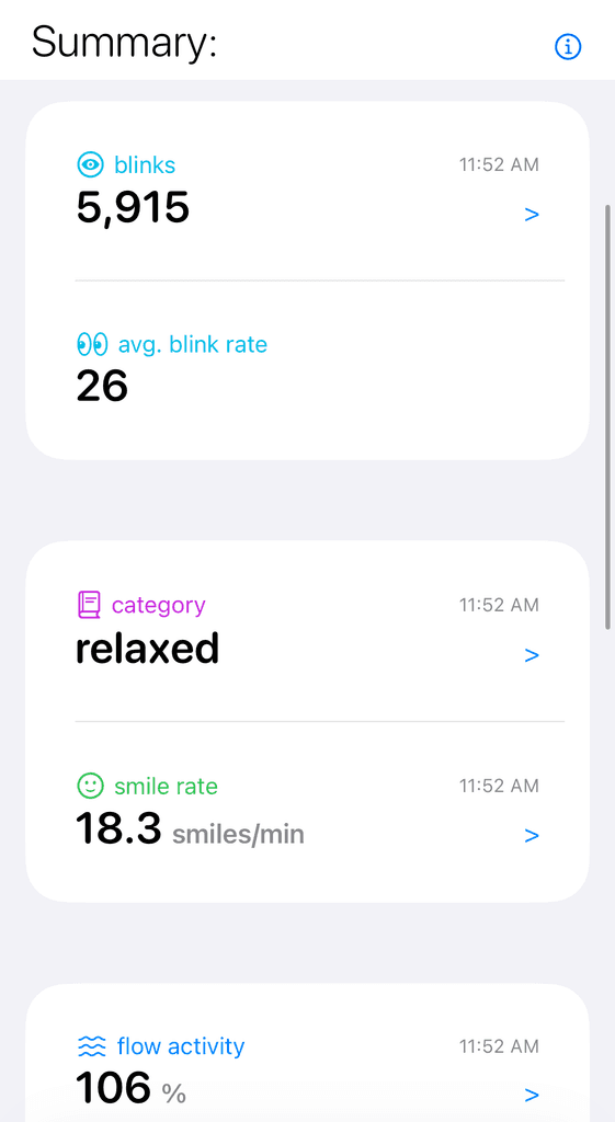 //coming soon & specification import Foundation /// One raw sample at time t (Hz = samplingRate) public struct NIRSSample: Sendable { public let t: TimeInterval // seconds from session start public let hbo: Double? public let hbr: Double? public let hbt: Double? public let heartRate: Double? public let hboRelVelocity: Double? public let stimulation: Double? public init(t: TimeInterval, hbo: Double?, hbr: Double?, hbt: Double?, heartRate: Double?, hboRelVelocity: Double?, stimulation: Double?) { self.t = t; self.hbo = hbo; self.hbr = hbr; self.hbt = hbt; self.heartRate = heartRate; self.hboRelVelocity = hboRelVelocity; self.stimultion = stimulation; } } public struct WindowFeatures: Sendable { public let vector: [Double] // feature vector for the window (order matches extractor) public let startT: TimeInterval public let endT: TimeInterval } public enum LikelihoodState: String, Sendable { case low, medium, high } public struct LikelihoodResult: Sendable { public let window: WindowFeatures /// Probability that the state == nback3/high-load (0...1) public let probHighLoad: Double public let state: LikelihoodState } public enum MicroEventKind: String, Sendable { case blink, smile } public struct MicroEvent: Sendable { public let kind: MicroEventKind public let t: TimeInterval public let confidence: Double // 0...1 }